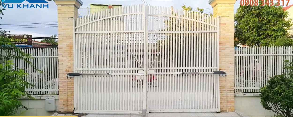 Cơ khí xây dựng Vũ Khanh tư vấn lắp đặt: Cổng sắt 2 cánh đẹp đơn giản đóng mở tự động tại Thuận An - Bình Dương, cho nhà anh Dự số 165 B, Ấp Bình Hòa, Phường Bình Nhâm, Thuận An, Bình Dương.