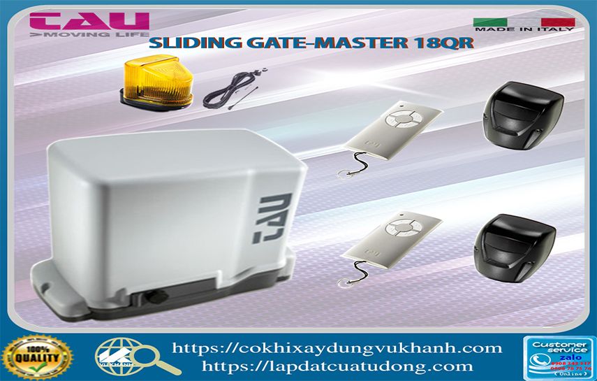 - Cổng trượt tự động Master18QR Italy sử dụng mach điều khiển mã hóa an toàn, dễ thao tác, cài đặt.